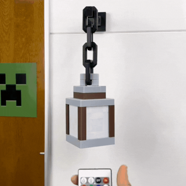 A Luminária - Lampião Minecraft conta com controle remoto para trocar as cores, ajustar o brilho e alternar entre os modos de luz com facilidade. Seu design pixelado 3D é um charme à parte — um toque nostálgico e criativo que combina com qualquer decoração geek.